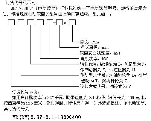 (2).用戶訂購逆止電動(dòng)滾筒時(shí),須注明旋轉(zhuǎn)方向,如不注明則為任意方向。其表示方法為在特性代號后加“S”(表示在電機(jī)引出線一側(cè)觀察,端蓋應(yīng)順時(shí)針旋轉(zhuǎn))或“N”(表示在電機(jī)引出線一側(cè)觀察,端蓋應(yīng)逆時(shí)針旋轉(zhuǎn))。