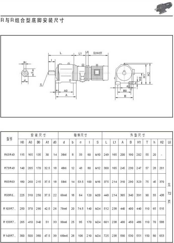 R與R組合型底腳安裝,外型安裝尺寸
