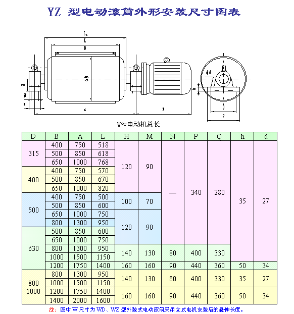 (1)因目前外裝式電動滾筒尚未制定相關行業(yè)標準,本廠將該型號電動滾筒首位代號用W(“外裝”的首位漢語拼音)表示。外裝式電動滾筒外置電機可分為立式電機和臥式電機,用戶訂購時請加以說明;